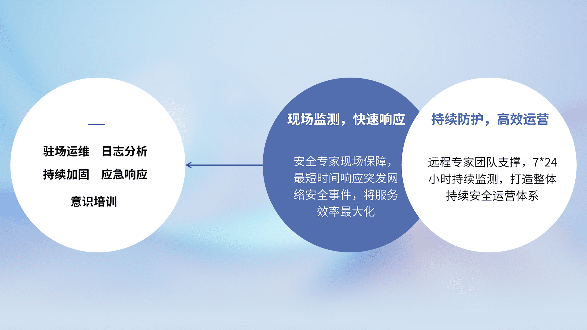 7X24小时持续监测安全事件,保持安全策略有效性,降低资产脆弱性风险,,精准拦截黑客攻击,,,,减少被黑客利用的机会,,,,第一时间遏制,,降低损失。。。