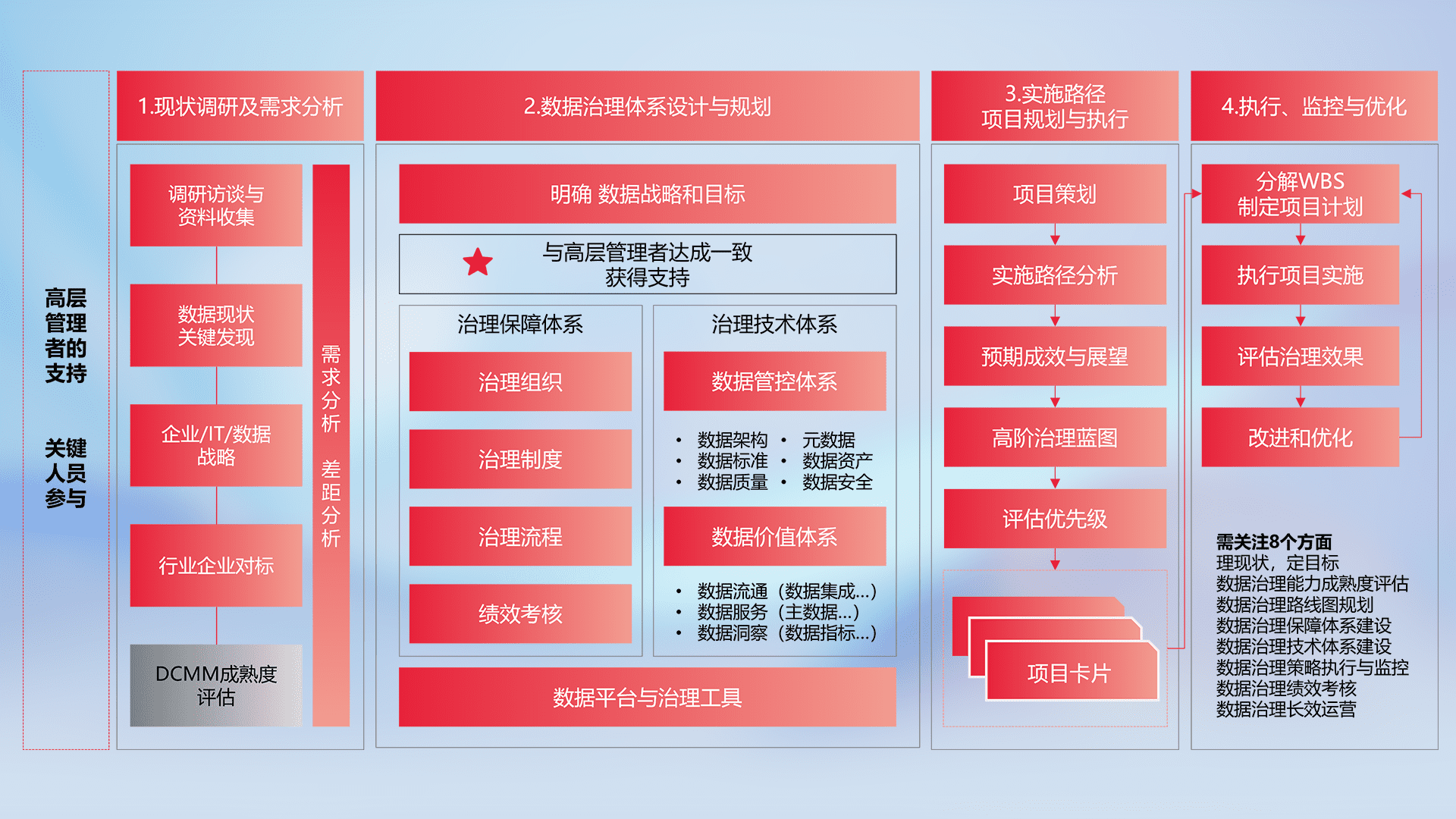 制定并执行统一的数据标准,,规范数据定义和格式,,,,消除冗余和不一致性,,实现跨部门和跨系统的数据一致性,,,为企业提供标准化的数据基础。。